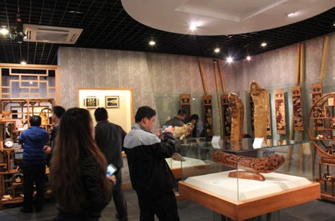 ??????? 跟隨著導游帶領(lǐng),【中國竹雕刻精品藝術(shù)館】便浮現(xiàn)在眼前、館內(nèi)珍藏了許多技藝精湛的竹雕刻藝術(shù)品。該館占地面積約3000平方米,共分為兩個展館——A館和B館,A館主要展示了竹子的發(fā)展進程、中國竹刻雕藝術(shù)品及各類竹根雕、竹編手工藝等,B館為售賣區(qū),為我們提供了各類竹根雕工藝品、竹纖維制品和竹炭等,充分顯示了中國源遠流長的竹文化精髓。