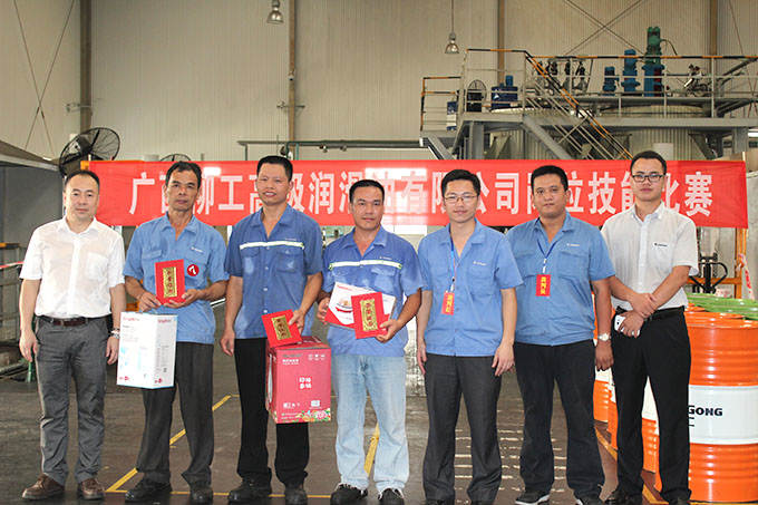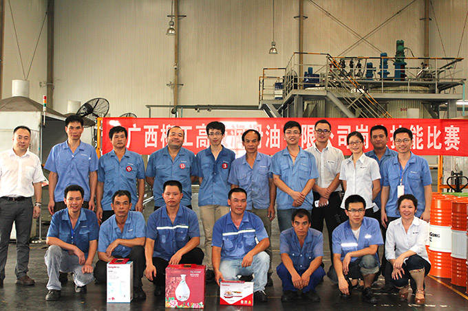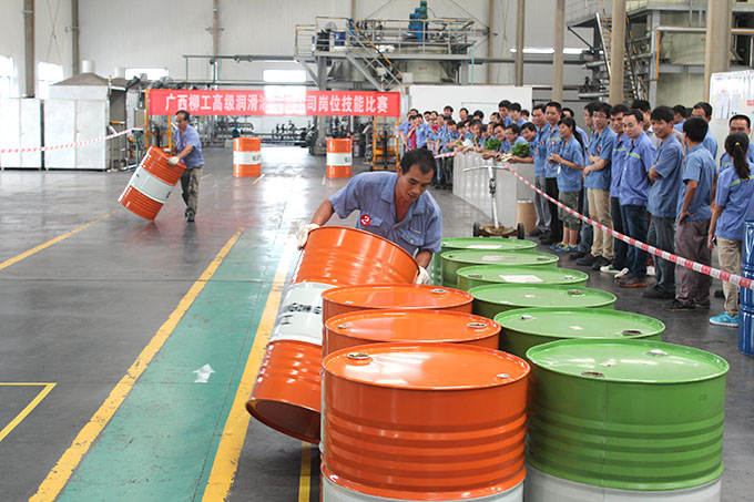 ? ? ? ? 2014年6月26日,廣西柳工高級(jí)潤滑油有限公司崗位技能比賽在調(diào)合廠正式拉開序幕。隨著裁判清脆的一聲哨響,200L油桶轉(zhuǎn)移比賽正式開始?!凹佑?,加油!”的助威聲在調(diào)合廠車間此起彼伏,經(jīng)過緊張激烈的角逐,譚定羽獲得第一名,謝永華、李占擴(kuò)分別獲得第二、三名。