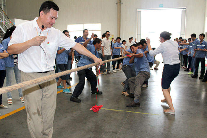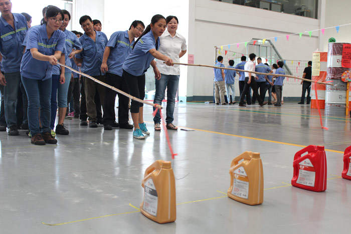 ? ? ? ? 9月25日下午15:00整,隨著一聲響亮的哨聲,游園活動在調(diào)油車間正式開始。點(diǎn)球大戰(zhàn)、投籃高手、大步流星、眼疾手快、猜謎、繞口令這些趣味十足的游戲讓員工們玩的不亦樂乎。彰顯團(tuán)隊凝聚力的拔河比賽最為精彩,隊員們都咬緊牙關(guān),使出全身力氣,都想在緊張激烈的力量拉鋸戰(zhàn)中勝出,觀眾的加油吶喊聲連綿不斷,現(xiàn)場氣氛熱烈至極,獲勝的隊伍歡呼雀躍,擊掌慶祝。
