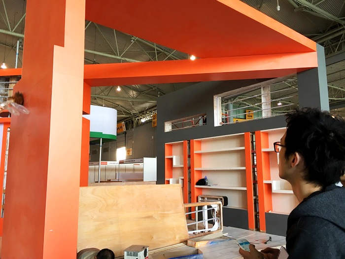 4.16,搭建開始。成都的工人和和氣氣,慢悠悠,負(fù)責(zé)搭建的小伙伴,一點(diǎn)也不敢放松監(jiān)督。