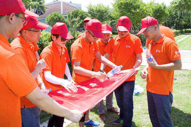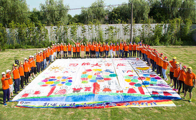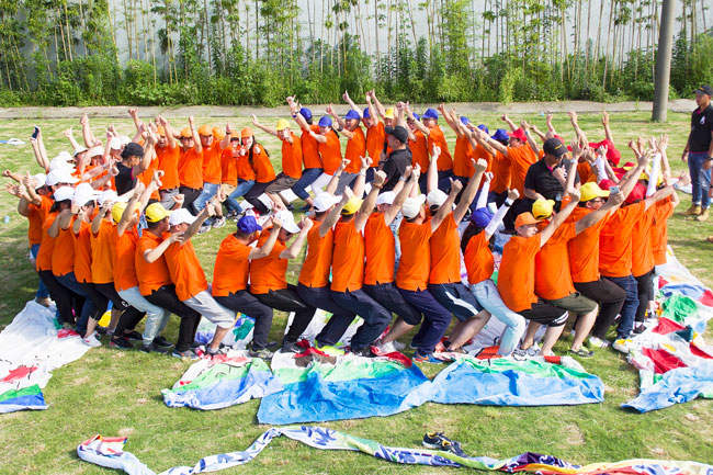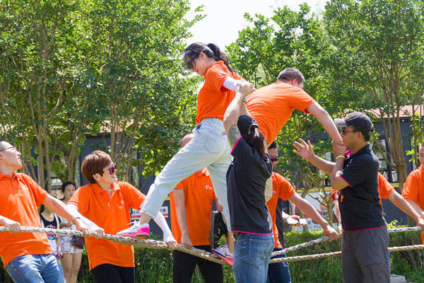 擰成一股繩,我們的力量足以支撐4個人的體重在繩上行走,在繩上行走的伙伴正象征著我們的領(lǐng)導層,他們需要相信伙伴們的力量,而底下伙伴的支持才是成功的關(guān)鍵!