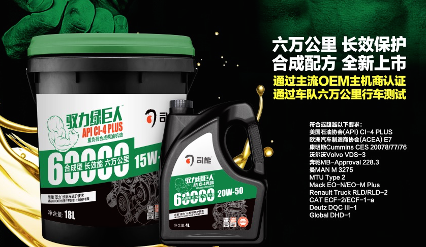 良好的潤(rùn)滑可幫助零部件減少摩擦損失,讓運(yùn)輸設(shè)備長(zhǎng)久、高效運(yùn)轉(zhuǎn)。馭力綠巨人?獨(dú)有司能長(zhǎng)壽命延護(hù)技術(shù),使用路博潤(rùn)最新添加劑專利配方、韓國(guó)進(jìn)口合成型二類基礎(chǔ)油及三類加氫基礎(chǔ)油互配,滿足國(guó)內(nèi)嚴(yán)苛路況,可達(dá)60000公里的換油周期,目前已通過(guò)主流OEM主機(jī)商認(rèn)證及車隊(duì)60000公里行車測(cè)試,讓卡友兄弟穩(wěn)操方向盤,輕松征戰(zhàn)60000公里!